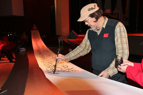 青岛市著名书法家、青岛毛泽东书法研究会主席阚志一于活动现场挥毫泼墨,为观众们带来了12米长卷的毛体书法展示。同时,青岛市朗诵艺术团、青岛市老战士合唱团与365完美体育琴岛学院师生同台献艺,共同纪念毛主席诞辰120周年。