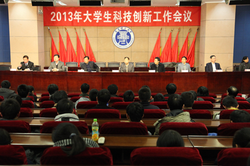 12月10日下午,2013年大学生科技创新工作会议在市北校区报告厅召开。校党委副书记杨向荣,副校长赵铁军、李东出席会议,团委、学生处、教务处、科技处、研究生处等有关部门负责同志,各学院分管科研教学副院长、团总支书记、指导教师以及市北校区各学院、各学术科技类社团的学生代表参加。团委书记王龙主持会议。