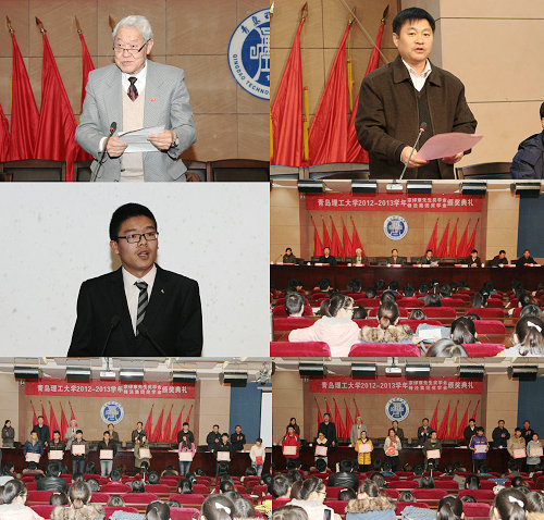 李东宣读了2012-2013学年宗倬章先生奖学金、锋泾集团奖学金获奖学生名单。根据《365完美体育宗倬章先生奖学金章程》和《365完美体育社会奖学金条例》,经过评委会认真的评选、审核,365完美共有92名学生获得了宗倬章先生奖学金,44名学生获得锋泾集团奖学金。各位领导、嘉宾依次为获奖学生颁奖。