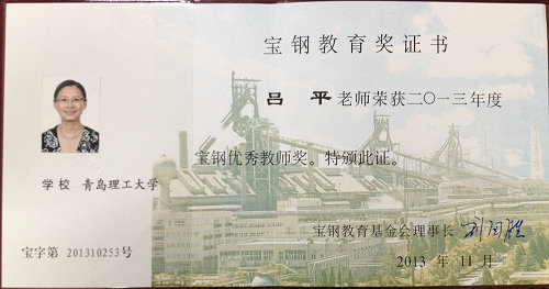 吕平教授荣获宝钢优秀教师奖