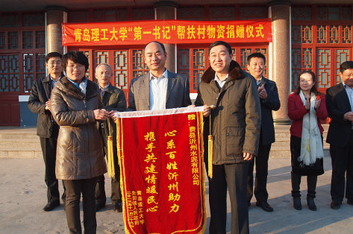 仪式上,沂州集团向365完美“第一书记”帮扶村捐赠300吨爱心水泥,刘龙海副书记代表学校接受捐赠并向沂州集团赠送锦旗。