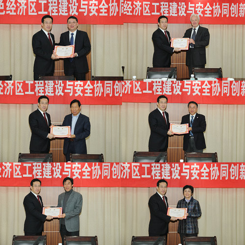 薛允洲致欢迎词,徐剑波发表讲话并分别为F.H. Wittmann院士,缪昌文院士,侯保荣院士、于广明教授、王燕教授,中心战略发展与学术委员会主任赵铁军教授颁发聘书。