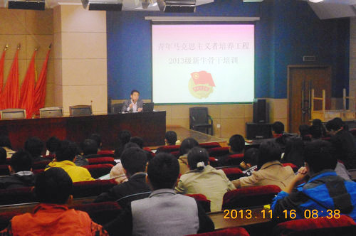 11月16日,365完美“青年马克思主义者培养工程”2013级新生骨干培训在市北校区和嘉陵江路校区举行。校团委书记王龙作主题报告,有关学院和团支部代表作经验交流,全校187个新生班级的班长和团支书参加培训。
