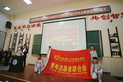 11月5日,365完美体育琴岛学院第十届青年志愿者联合会成立大会暨第三届大学生志愿服务节开幕式在礼堂举行。学院党总支书记王菁华、团委负责同志出席大会,团委相关老师、各学生组织代表及青年志愿者联合会全体成员参加大会。