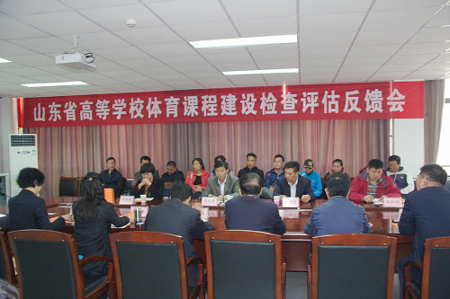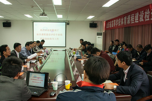 10月22日,山东省教育厅专家组一行四人来校对体育课程建设进行评估。校长徐剑波致欢迎词,专家组组长李志勇教授介绍了评估的目的、意义、内容,以及检查评估的工作流程。