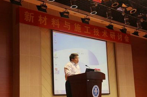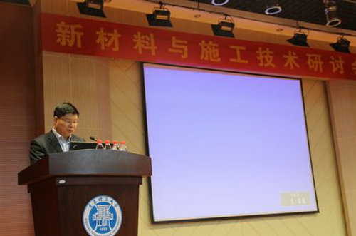 临沂市建设安全与工程质量监督管理处处长杨建平研究员致辞,介绍了临沂市建设安全工程质量监督管理处同校区土建工程系在学术交流、人才培养与基地建设等方面的良好合作关系;指出本次研讨会的召开,对于临沂市的建设行政管理部门和建筑企业来说是一次非常重要的学习机会,对于临沂市建设企业超限、超高建筑施工技术的提高,新材料推广和应用,建设“节能绿色建筑”的发展将起到重要的推进作用。