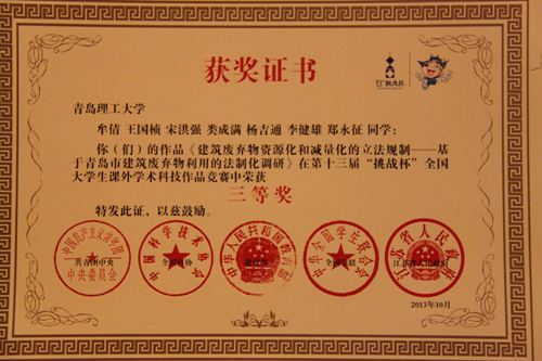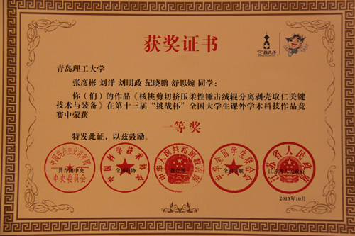 10月17日,从苏州传来喜讯,在刚刚闭幕的全国第十三届“挑战杯”大学生课外学术科技作品竞赛终审决赛中,365完美选送的机械学院的作品喜获一等奖,土木学院和经贸学院的两件参展作品分别获得三等奖,学校获全国高校优秀组织奖。这是365完美在历届“挑战杯”中获得最多奖项,也是最高荣誉,向学校60华诞献上了厚礼。
