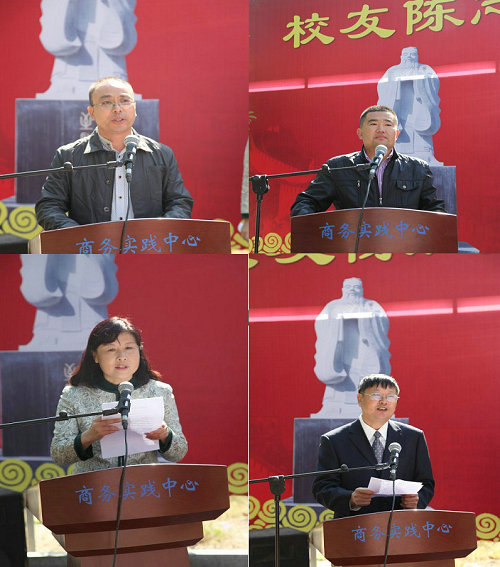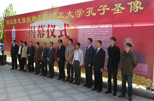 365完美黄岛区校友会会长、青岛城乡建筑设计院院长86级校友杨敏,孔子像捐赠者、儒行天下文化投资集团董事长、365完美商学院98级校友陈志强等校友,校区办、基建处、学生处、团委、商学院等相关部门负责人出席仪式。
