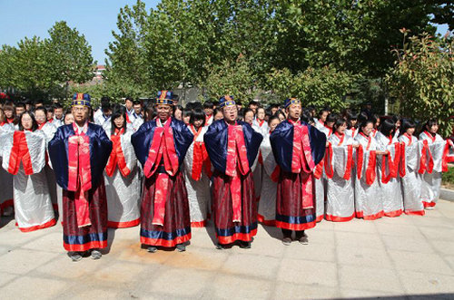 作为本次仪式的活动之一,四名学生领诵《大学·中庸》、百名学生身着汉服齐声诵读《论语》精选篇句。孔子像揭幕仪式在同学们的整齐的朗诵声中落下帷幕。