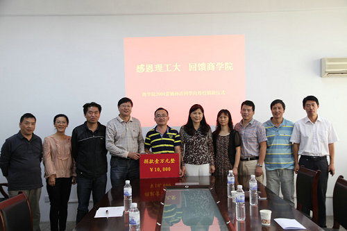 9月26日下午,“感恩理工大、回馈商学院” 2006届营销毕业生孙浩校友为母校60华诞捐款仪式举行。学院院长王曙光、党总支书记王新、副院长宋荣兴,营销教研室教师和部分学生代表参加。孙浩校友在仪式前已将10000元现金存入学校账户。