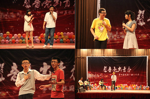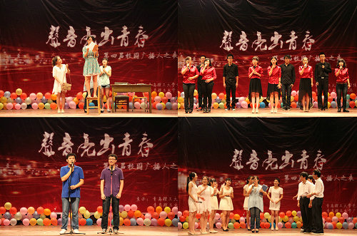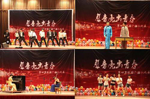 在活力四射、青春飞扬的开场舞中,晚会帷幕徐徐拉开。晚会由广播站全体成员出演,许多毕业多年的校园广播人荣归母校,与在校生同台演出。整台晚会节目精彩纷呈,充分展示了大学校园广播人的多才多艺和丰富创意。中英文配音表演惟妙惟肖,体现出校园广播人不错的播音功底;相声《校园大话吐槽》、《好好学习》紧密接轨大学校园生活,包袱不断,既赞扬了认真学习、勇担责任等大学校园里好的风气,同时也善意讽刺了部分大学生中存在的不良习气,幽默诙谐之中折射出当代大学生对学习生活的深刻反思、对做人做事的真诚感悟。由同学们自编自导自演的情景剧《广播站纳新的那些事》、音乐剧《花开的声音》通过一幅幅日常学习生活片断,充分呈现出丰富多彩的校园文化和积极向上的青春活力。除了语言类节目之外,钢琴与琵琶的器乐合奏中西交融,令人耳目一新;从容悦耳的和声、动感时尚的舞蹈、清新婉转的情歌对唱、校园气息浓厚的吉他乐队演出都博得在场观众阵阵掌声。最后,来自天南地北的广播站毕业生共同朗诵的诗歌《一生有你》,饱含深情、真挚深切,诉说了对美好时光、美丽校园以及广播人难忘经历的赞美之意,依恋之情。
