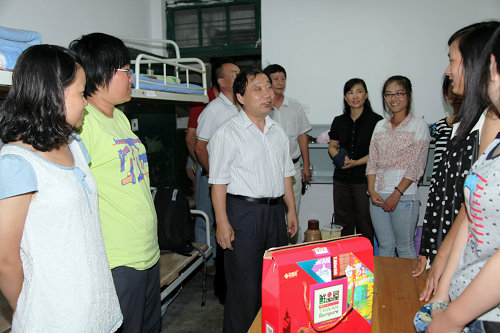 9月18日,在中秋佳节到来之际,校党委副书记杨向荣、副校长李东在宣传部、学生处、团委等部门负责人陪同下,来到2013级新生宿舍和新生班级联欢现场,发放月饼,看望慰问2013级新生,与新生共度中秋佳节。