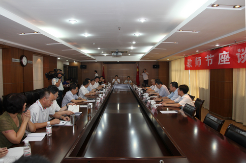 校党委书记薛允洲主持座谈,校长徐剑波汇报学校工作,校党委副书记杨向荣、刘龙海,副校长赵铁军、李国华、杨兴昌,部分职能部门负责人及优秀教师代表参加座谈。