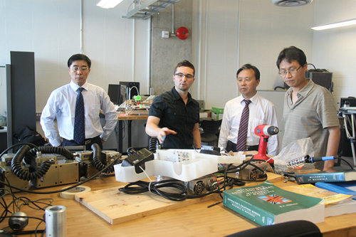 访问加拿大安大略省理工大学期间,参访了安大略大学的机械设计与制造中心和机器人研发中心。该中心现在是加拿大三大有全部自主研发能力的机器人研发中心之一,有来自欧美的访问学者和博士生共同参与的团队。双方就对博士生2+1联合培养、青年教师访问、科研项目联合申报和开发进行了深入细致的探讨。双方约定尽快将此次考察访问中达成的意向形成校际合作协议以推进项目的具体实施。
