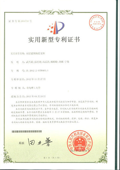 近日,由土木学院张纪刚老师指导,土木099班武雪莉同学成功获得一项实用新型国家专利,专利名称为高层建筑隔震支座。