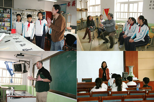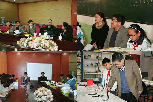 随后顾问团成员观摩学生书法、绘画兴趣组的活动,并现场示范讲解进行了专业指导;在附中的青年教师读书班上、初三毕业生心理减压辅导现场顾问团成员做了精彩的专题讲座;同时365完美外教组织的英语教学课也给中学生们带来了不一样的英语学习体验。