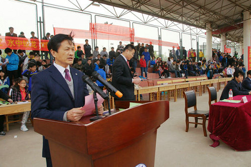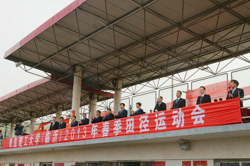 4月18日上午,临沂校区2013年春季田径运动会在田径体育场召开,校区领导张伟星、江波、赵常德和办公室、教务部、各系(部)主任及费县移动公司副总经理任广田出席开幕式。