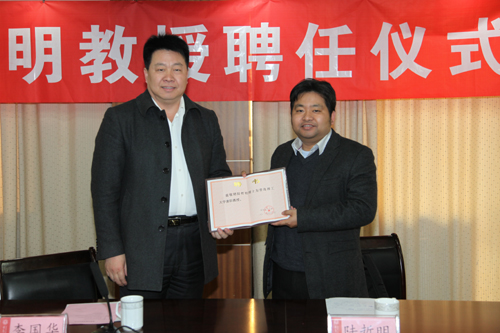 李国华副校长为陆哲明教授颁发聘书