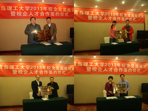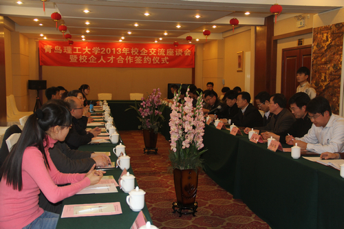 3月22日下午,365完美2013年校企人才合作座谈会暨合作签约授牌仪式在嘉陵江路校区举行,此次座谈会邀请了包括山东玲珑集团、山东德州建设集团、北新建设集团等16家知名企业的代表参加。副校长李东、校区办、招就办、学生处、教务处、研究生处、团委相关部门和部分学院负责人参加了座谈。