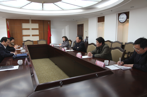 3月20日下午,山东理工大学党委书记都光珍、党委副书记谭秀森带领党办校办和组织部负责人来365完美访问交流。校党委书记薛允洲、校党委副书记刘龙海在图书科技楼会议室会见了都光珍书记一行,党委组织部部长夏侯雪娇、党办校办副主任孙川三参加座谈。