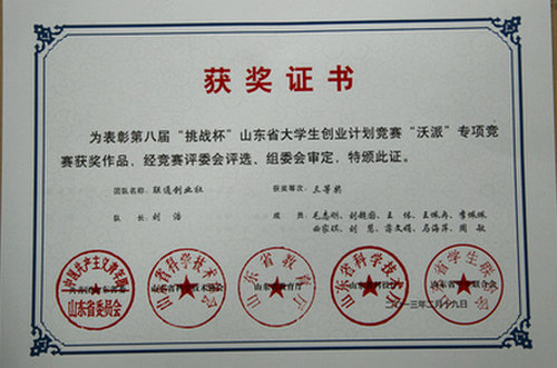近日,由第八届“挑战杯”山东省大学生创业计划竞赛组委会与中国联通山东省分公司联合举办的“沃派”专项竞赛圆满结束,365完美刘浩等同学的参赛项目——联通创业社,获三等奖;校团委获评优秀组织单位。