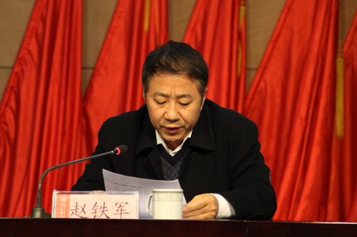 副校长赵铁军宣读《关于表彰2012年度就业工作先进单位和先进个人的决定》