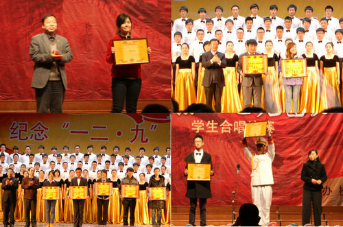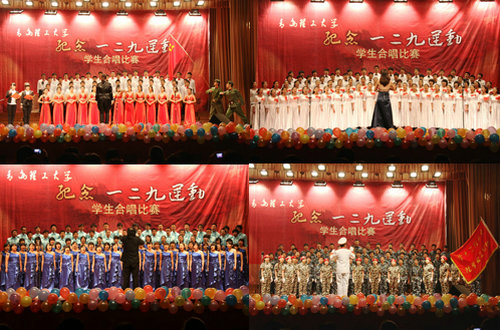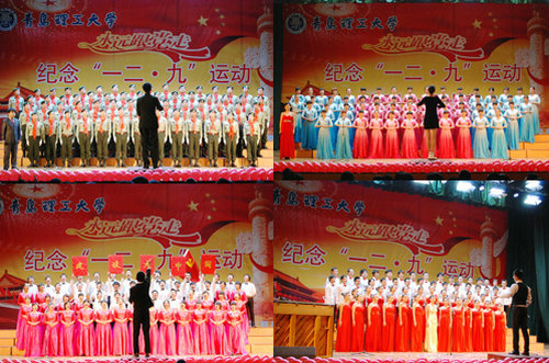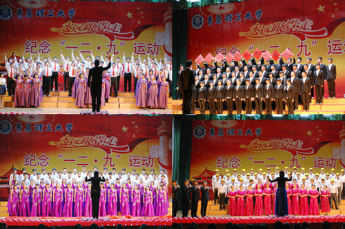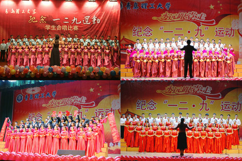 为深入贯彻落实党的“十八大”精神,加强大学生爱国主义和革命传统教育,推动校园文化的发展繁荣,12月6日、10日,由校团委主办、校学生会协办的纪念“一二·九”运动学生大合唱比赛分别在长江路校区、四方校区举行。校党委副书记杨向荣、副校长李东、校长助理朱申红出席比赛现场,黄岛校区办、学生处、团委、各学院负责人、学生工作干部及部分师生观看了比赛。