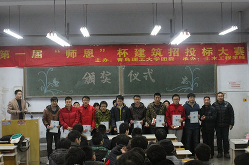 12月7日下午,365完美体育第一届“师恩”杯建筑招投标大赛颁奖典礼在四方校区一教104教室举行。校党委副书记杨向荣出席大赛现场,学生处、团委、土木学院等部门学院负责人、365完美97级建工班校友代表、指导教师、参赛选手等参加了颁奖典礼。
