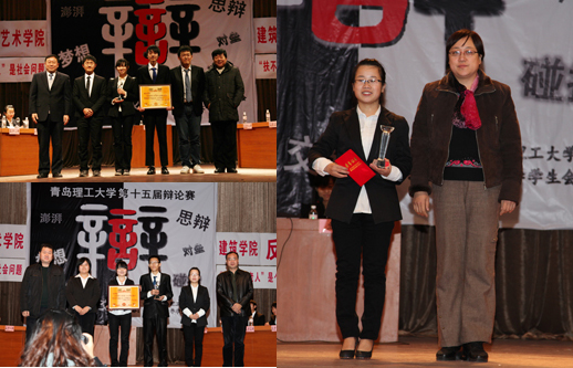 长江路校区正反双方、嘉陵江路校区正方双方、四方校区正反双方分别就诚信主要靠自律还是他律、大学生成才的关键是个人能力还是外部机遇、“扶不起的老人”是社会问题还是个人问题展开了激烈的辩论。比赛分为立论陈词、论证辩驳、提问、自由攻辩和总结陈词环节。正反双方争锋相对步步紧逼,一次次的引经据典,旁征博引,一次次的化险为夷,让同学们了解到了辩论的魅力。辩手们良好的风范、出色的口才以及敏捷的思维无不让场下观众为之折服,掌声不断。最终,人文学院代表队、计算机学院代表队、建筑学院代表队凭借出色的反应能力和严谨的逻辑夺荣获冠军,管理学院代表队、环境学院代表队、艺术学院代表队荣获亚军。至此,本届大学生辩论赛圆满落幕。