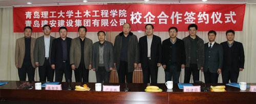 土木学院党总支书记张明义首先简要介绍了土木学院的综合情况,他表示学院将进一步加强校企合作,在科研项目及人才培养方面更好地为企业服务,实现学院与企业优势互补、互利共赢。青岛建安建设集团董事长杨建强在致辞中对校企合作的意义给予充分肯定,希望双方今后能够发挥各自优势在多方面深入开展具体的合作。卢举林会长高度评价了此次校企合作,这种强强联合适应了高校人才培养和现代化企业内在发展的要求,产学研的结合对提高学校人才培养质量、促进企业健康发展都具有重要意义,希望双方密切合作,相互促进,结出校企合作的累累硕果。