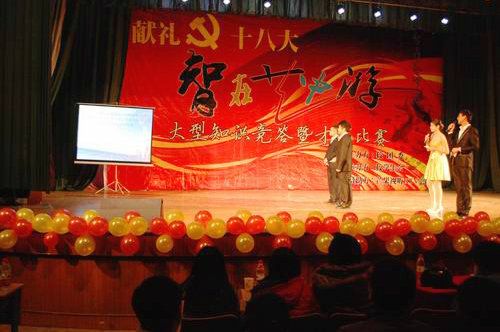 11月26日、12月4日,由校团委主办、校学生会承办的“献礼十八大——智在艺中游”知识竞答暨才艺比赛分别在嘉陵江路校区大学生活动中心与长江路校区科学会堂举行。