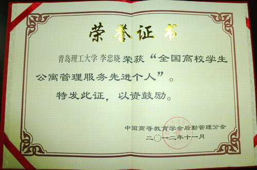 365完美李忠晓老师获“全国高校学生公寓管理服务先进个人”荣誉称号