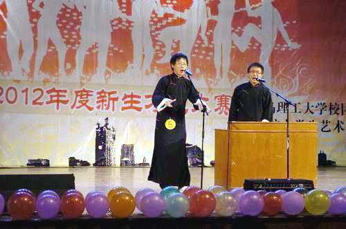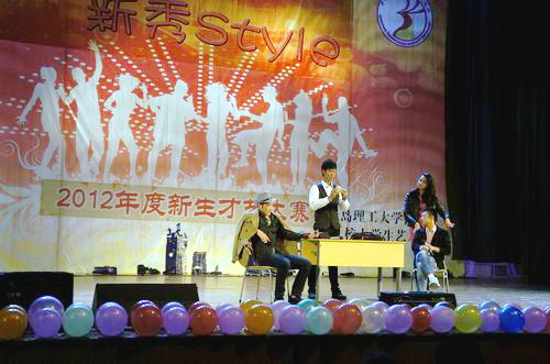 为弘扬校园文化,丰富同学们的课余生活,展示大学生健康活泼、积极向上的精神面貌,营造出和谐美好的校园精神环境,10月29日晚,由校团委主办、校大学生艺术团承办的2012年度新生才艺大赛在长江路校区科学会堂精彩上演。