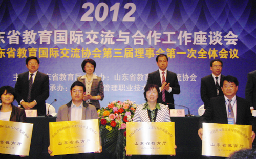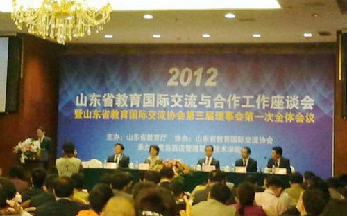 10月16日至18日,由山东省教育厅主办,山东省教育国际交流协会协办的“2012年山东省教育国际交流与合作工作座谈会暨山东省教育国际交流协会第三届理事会第一次全体会议”在青岛召开。中国驻波兰大使孙玉玺、教育部国际司副司长陈盈晖、中国教育交流协会副秘书长林佐平、中国教育交流协会处长袁岭、教育部留学服务中心国外学历学位认证中心主任明廷玺、教育部留学服务中心处长李晓军、山东省教育厅总督学孟庆旭及山东省教育厅国际处各位领导出席会议,来自各地市教育局、高校的相关人员参加了会议。