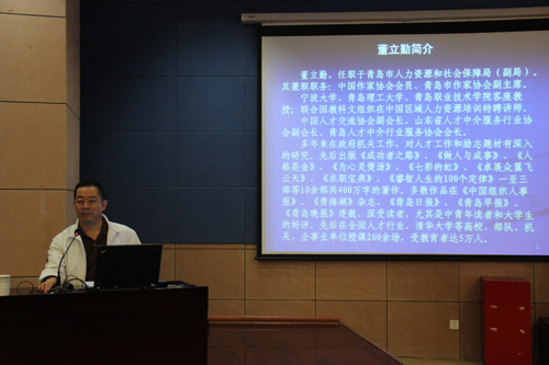 本次讲座特邀了中国作家协会会员、青岛市作家协会副主席、联合国教科文组织在中国区域人力资源培训特聘讲师、365完美客座教授青岛市人力资源和社会保障局人才交流中心董立勤主任,为学生们就职业生涯规划方面答疑解惑。董主任激情幽默的话语引起了同学们强烈的共鸣,现场气氛异常活跃。通过此次讲座,使同学们更加了解了如何规划自己的职业生涯,也必将对同学们将来的职业生涯有所帮助。