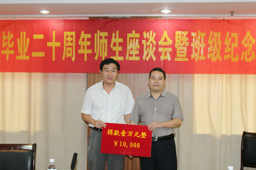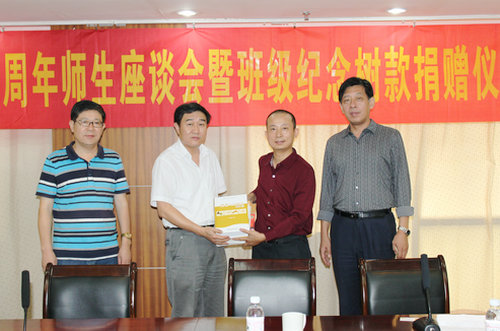 9月22日上午,建管88级毕业二十周年师生座谈会暨班级纪念树款捐赠仪式在图书科技楼会议室举行,校党委副书记刘龙海代表学校接受捐赠并讲话。党委校长办公室、校董校友办负责人及原管理系部分老师代表应邀参加座谈会。
