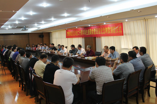 校友代表、四川蜀通建设集团公司副经理余池在发言中深情回忆了在校四年的美好时光,表达了对母校及老师的感恩之情。表示一定为母校发展尽绵薄之力,明年母校60华诞之际再聚母校,祝愿母校再创辉煌,祝愿恩师福泰安康!座谈会上,校友李春还将自己多年的研究成果捐献给学校图书馆和管理学院。