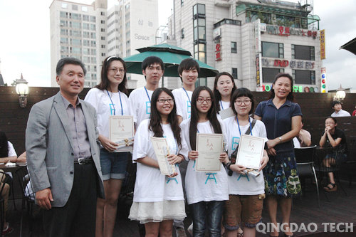 国际学院孙玉洁院长和光云大学卢三圭教授为联合设计获奖学生颁奖