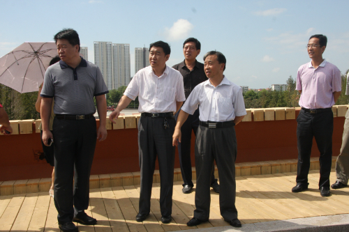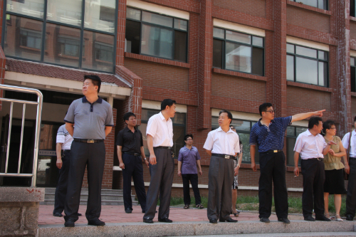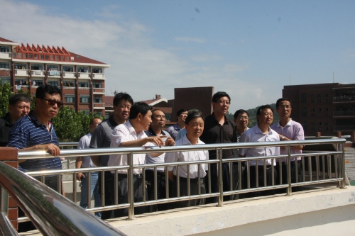 8月27日,校党委书记薛允洲在副书记刘龙海、副校长李东、李国华、校长助理朱申红以及党办校办、黄岛校区办、基建处、后勤处、学生处、国资处、体育部、新校区建设指挥部、设计院等部门负责同志的陪同下,冒着酷暑视察了黄岛校区新学期各项工作的准备情况。