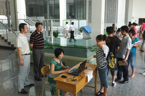 7月21日,2012级研究生新生入学报到工作正式拉开帷幕。在研究生处的精心组织下,财务处、后勤处、保卫处等相关部门密切配合,每个步骤都安排相关服务人员积极热情地为新生入学手续办理提供帮助和服务。研究生处的老师在迎新现场指挥协调,耐心解答学生、家长的疑难问题,使整个报到工作井然有序,得到新生、家长的一致好评。截至21日晚上,除6名同学请假外,其余482名新生全部报到。