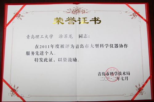 2011年度青岛市仪器检测服务费补贴专项基金200万元,365完美获得仪器共享补贴近20万元。