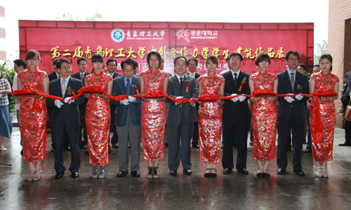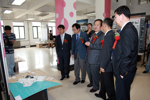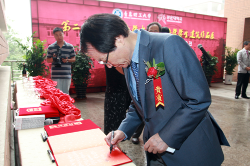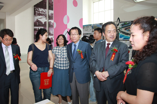 颁奖结束后,仪垂杰校长同金基永校长为本次开幕式剪彩,并和教授们一同参观了学生的建筑设计作品。