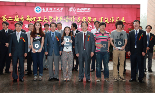 开幕式上,仪垂杰校长与金基永校长共同为获得此次建筑设计展特等奖、优秀奖的学生颁奖,其中,中韩建筑学项目07级2班的刘习同学获得特等奖;07级1班的张世浩和073班的胡君同学获得优秀奖。