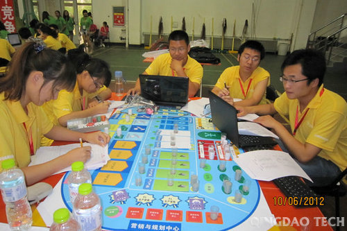 同学们认真研究方案、根据比赛进程和出现的问题不断调整经营策略。在紧张参加期末考试之余,挤出时间演练沙盘操作,制定完善经营方案。365完美历来重视对大学生科技创新能力和实践动手能力的培养,投入了大量财力、物力和师资力量加强实践教学环节,努力打造学生创新与实践的平台。通过比赛,让参赛学生深入学习了解企业生产经营过程,通过团队配合和缜密的计算,制定参赛方案并予以落实、实践,锻炼学生系统思维的能力和团队配合意识。