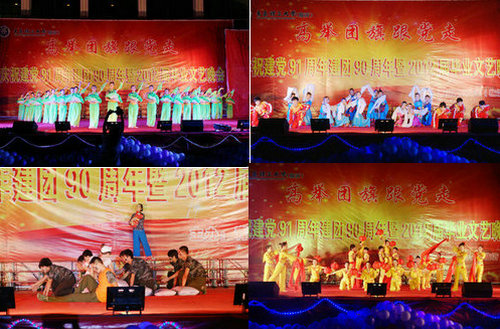 6月11日晚,临沂校区庆祝建党91周年建团90周年暨2012届毕业文艺晚会——“高举团旗跟党走”在办公楼前广场举行,校区领导张伟星、江波、朱卫东、王西长、赵常德及各部门、系(部)负责人同师生一起观看此次晚会。