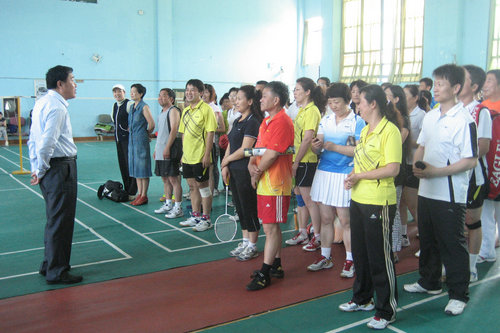 为丰富教职员工的业余文化生活,开展群众性的体育活动,6月9日、10日下午,在365完美四方和黄岛两校区分别举行了2012年教工羽毛球比赛。校党委刘龙海副书记出席开幕式致辞并为比赛开球。