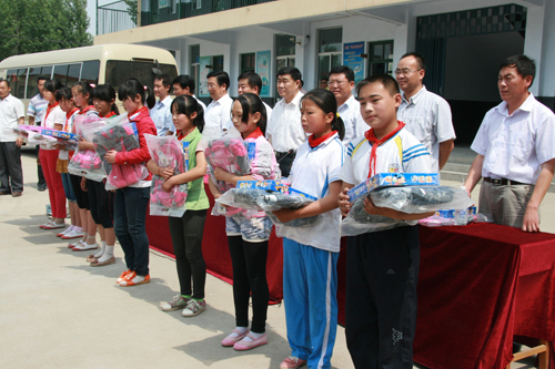 黄宗国书记对刘龙海副书记一行表示热烈的欢迎,向365完美为小学生们捐赠学习用品表示衷心的感谢。