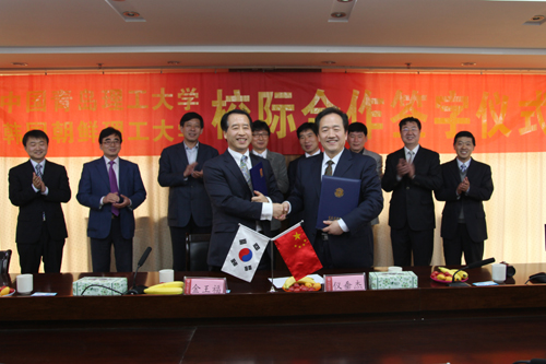 校长仪垂杰、韩国朝鲜理工大学校长金王福分别代表双方在协议书上签字