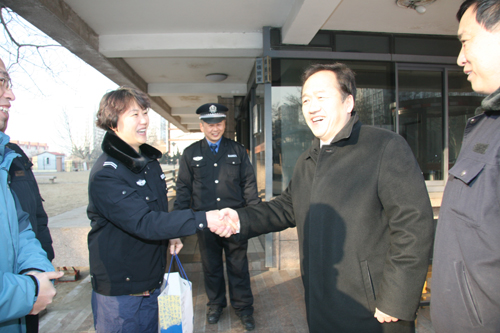 在门卫值班室,仪校长向保卫处、物业的工作人员拜年问候;在换热站和配电室,仪校长仔细询问了春节期间校园及家属区的供暖供电情况,嘱咐工作人员认真做好春节期间的各项工作,并与后勤处负责人等就进一步做好后勤节能减排工作进行了交流与探讨;在车队,仪校长与司机师傅们亲切座谈,和大家共同回顾了学校近年来取得的突出成就,勉励大家再接再厉、努力工作,在校党委行政的领导下,与全校师生员工一起,进一步推动学校事业发展的车轮滚滚向前。