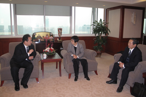 宝钢总经理助理王利群,校党委副书记赵怀明及学校校董校友办公室负责同志陪同座谈。(校董校友办公室)